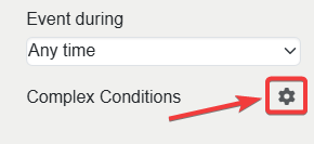 Pour commencer à configurer vos options de Conditions Complexes, cliquez sur l’icône des paramètres à côté de Conditions Complexes dans le panneau de filtres, ou —